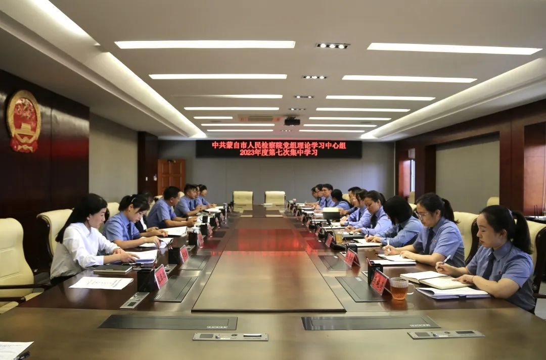 10月25日,蒙自市人民检察院党组理论学习中心组举行2023年第七次集中学习活动,市检察院班子成员、检委会专职委员、部门负责人参加学习。市检察院党组书记、检察长毛雪峰主持会议。市党委(党组)理论学习中心组第四旁听工作组成员、市纪委市监委宣传部一级科员李秀章到会列席指导。