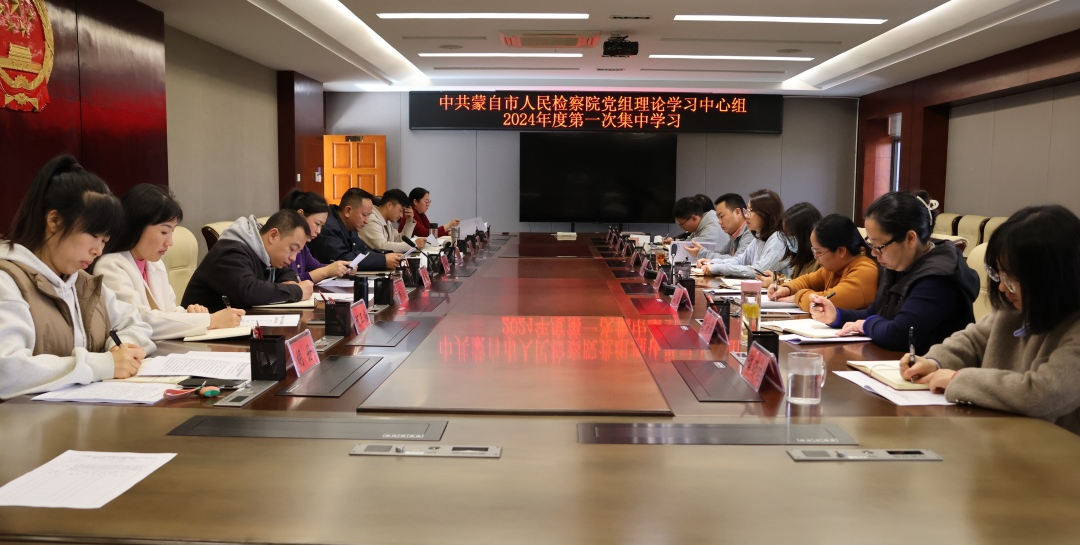 1月11日,蒙自市人民检察院党组理论学习中心组举行2024年第一次集中学习活动,市检察院班子成员、检委会专职委员、部门负责人、员额检察官参加学习,市检察院党组书记、检察长毛雪峰主持并讲话。