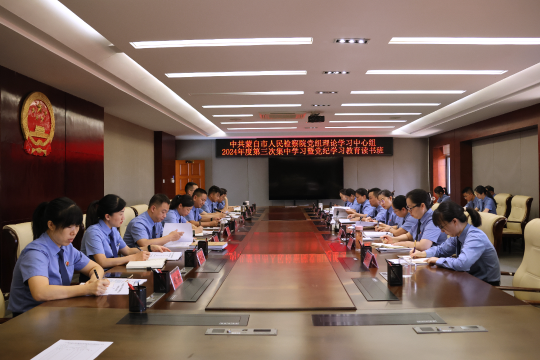 为贯彻落实党中央和省、州、市党委关于党纪学习教育工作的要求,引导党员领导干部学纪、知纪、明纪、守纪,4月29日,蒙自市人民检察院举行党组理论学习中心组第三次集中学习暨党纪学习教育读书班,市检察院班子成员,检委会专职委员,部门负责人,员额检察官参加会议。市检察院党组书记、检察长毛雪峰主持会议。