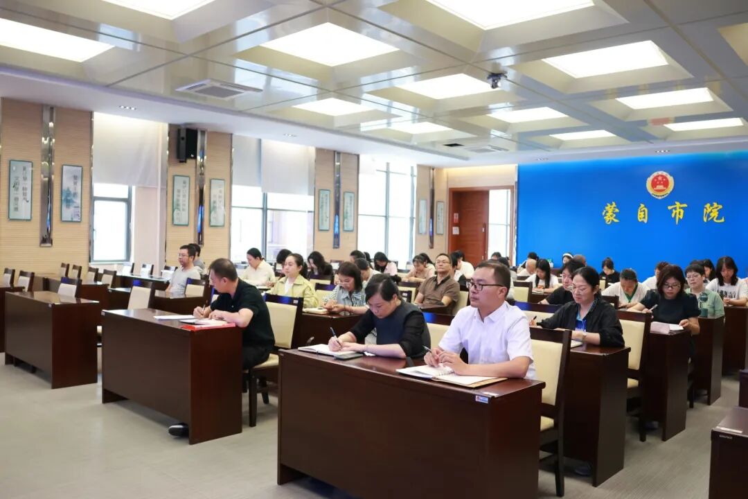 会议传达学习了《中共红河州纪律检查委员会关于5起违规吃喝典型问题的通报》《中共蒙自市纪律检查委员会关于两起违反中央八项规定精神问题的通报》等文件,通过以案说纪、以案说法,教育引导全体干警知敬畏、存戒惧、守底线,坚决杜绝违规违纪行为。