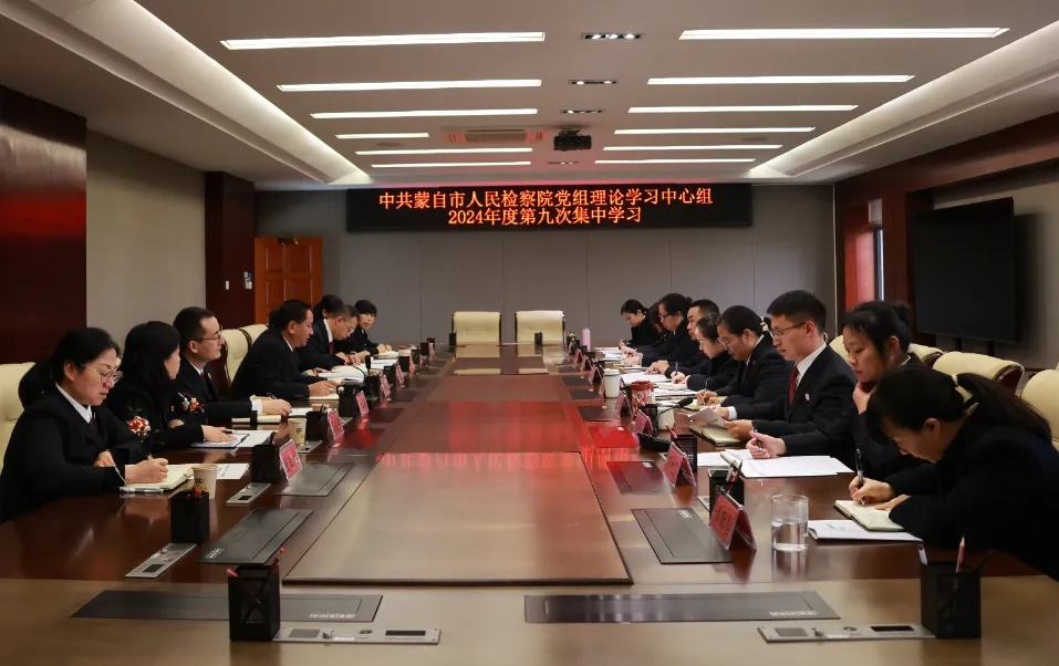 12月13日,蒙自市人民检察院党组理论学习中心组举行2024年第九次集中学习活动,市检察院班子成员、检委会专职委员、部门负责人参加学习。党组书记、检察长毛雪峰主持会议。市委文明办专职副主任李桂英同志到会旁听指导。会议深入学习了习近平外交思想、习近平总书记关于总体国家安全观的重要论述、习近平总书记关于党的自我革命的重要思想等内容。