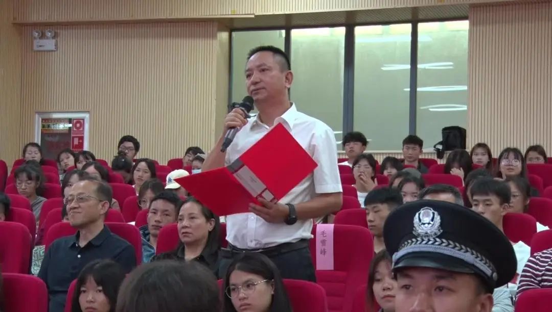 在模拟庭审结束后,未检检察官还结合案例进行了“庭审”释法,通过提问互动等形式进行答疑解惑,法庭组成人员谈了自己的感受、体会与在场学生进行分享。最后蒙自市人民检察院检察长毛雪峰对庭审演绎进行了点评,充分肯定了同学们的出色表现,同时提醒同学们提高警惕,不要为了贪图小利,受不法分子蛊惑利诱而出售、出租自己的银行卡、手机卡,为不法分子转账、取现,沦为电信网络诈骗等犯罪的工具人。