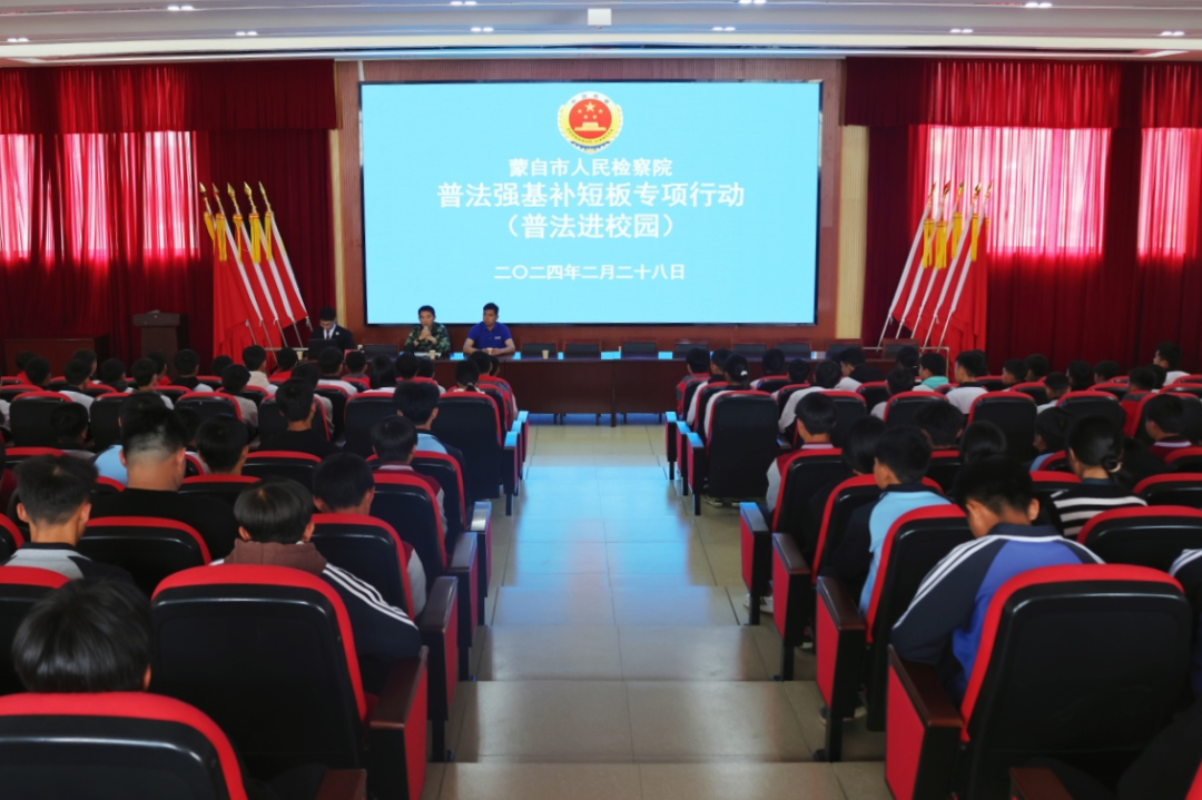 青少年是祖国的未来,是民族的希望,是社会主义现代化事业的建设者和接班人。蒙自市人民检察院将对标常态化开展普法强基补短板专项行动相关要求,持续组织精干普法力量,结合检察履职过程中的实际案例和青少年学生身心特性,坚持以案释法普法宣传形式,将法治的种子播撒到学生们的心灵深处,以法润心,引导青少年学生牢固树立法治意识。