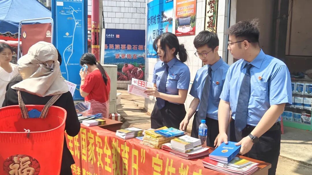三进乡镇攻坚普法难点。巧借乡镇“赶集日”,以双语普法、讲述真实案例的方式开展宣传,以通俗易懂的话语向乡镇居民普及国家安全知识,攻坚乡镇普法中居住分散、不易组织、文化素质低等难点,让群众听得懂、能理解,同时倡导群众牢固树立国家安全观念,积极举报危害国家安全违法犯罪,维护国家安全。