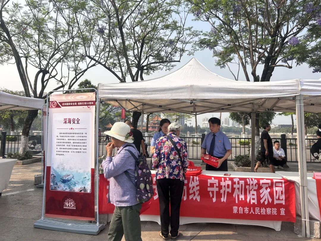 为深入贯彻落实党的二十大精神,营造自觉维护国家安全的浓厚氛围,在第九个全民国家安全教育日来临之际,蒙自市人民检察院围绕“总体国家安全观·创新引领10周年”主题,开展“一学三进”教育宣传活动,推动国家安全教育走深走实。