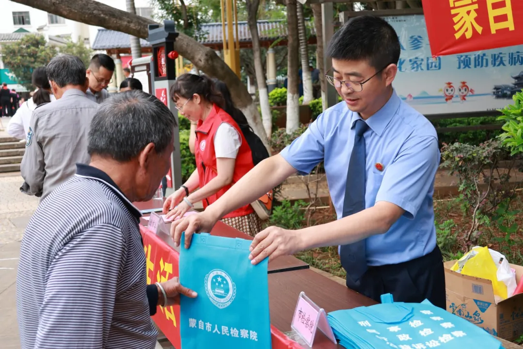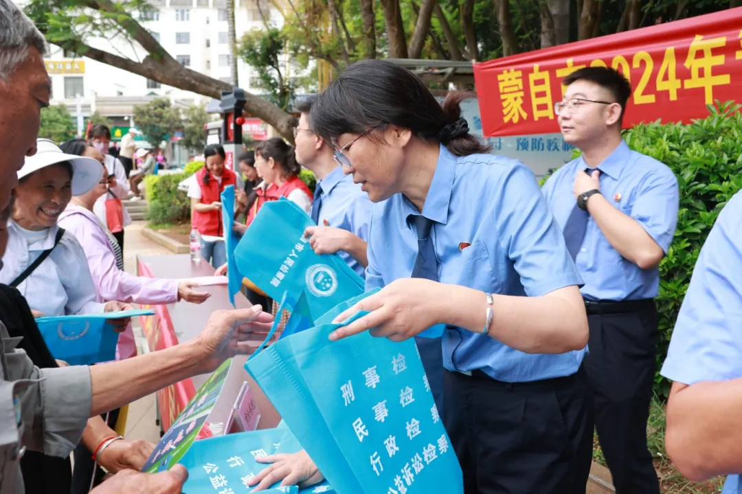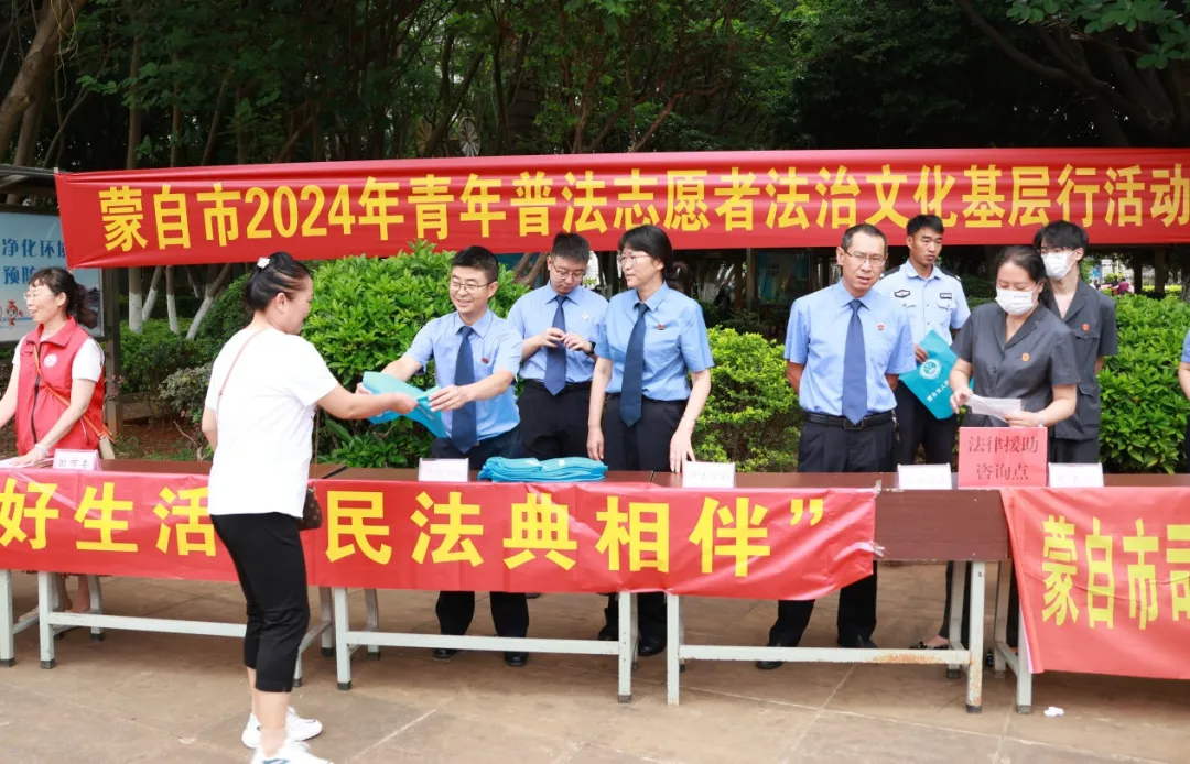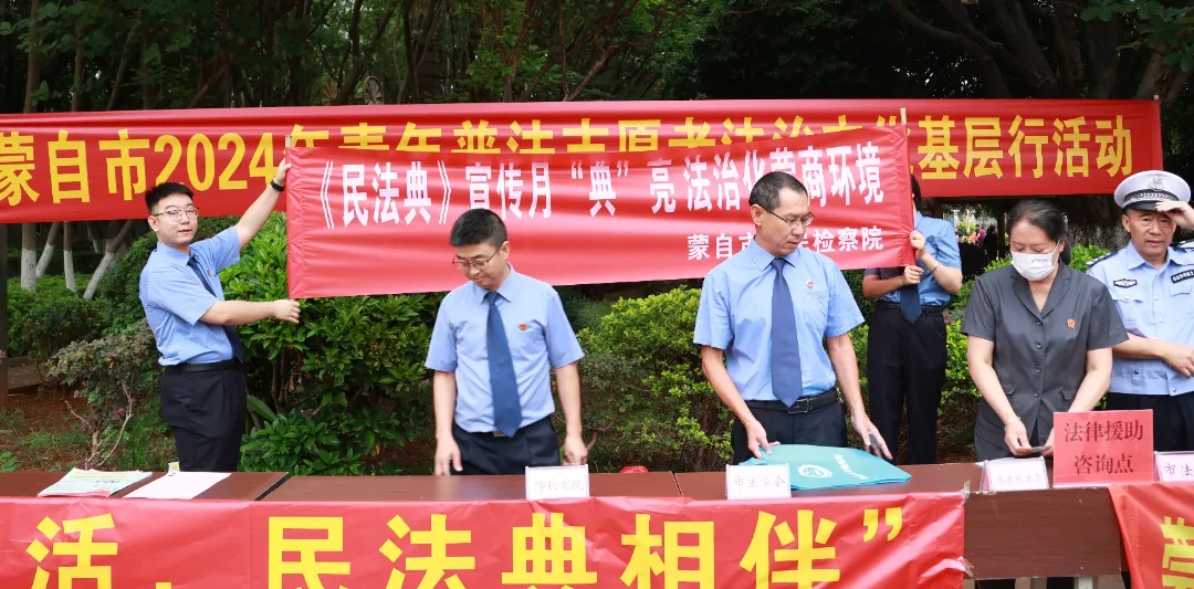 为深入学习贯彻习近平总书记关于“法治是最好的营商环境”重要论述,提高群众的法治意识和法律素养,5月31日,蒙自市人民检察院以“民法典宣传月”为契机,组织干警前往南湖法治文化广场,参加蒙自市2024年青年普法志愿者法治文化基层行活动。