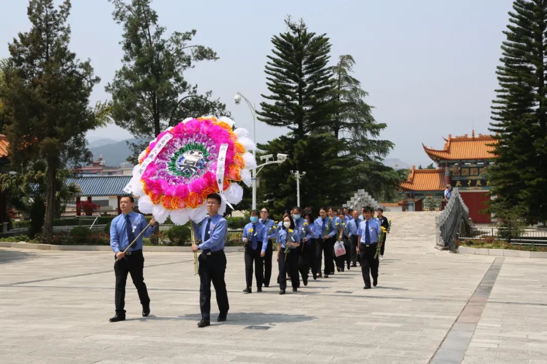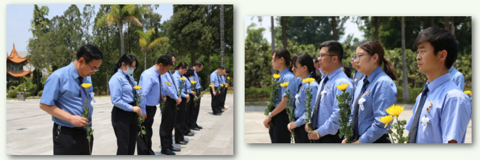 在纪念碑前,干警们整齐列队、默哀、致悼词、献花,表达对英烈的哀思。