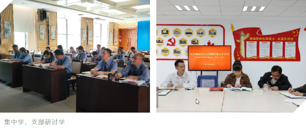 结合“三会一课”和主题党日活动,不定期组织以支部为单位,围绕教育整顿学习要求进行学习研讨,将一人讲变为大家讲,把领导讲变为讨论学,实现被动学习到主动学习的转变,为广大干警搭建业务知识学习的平台。