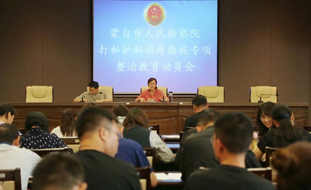 5月6日上午,蒙自市人民检察院召开打私护私顽瘴痼疾专项整治教育动员部署会,院党组副书记、副检察长张玲作动员讲话,党组成员、副检察长冯应伟主持会议并作工作安排,院党组班子成员、全体检察干警以及聘用制书记员参加会议。