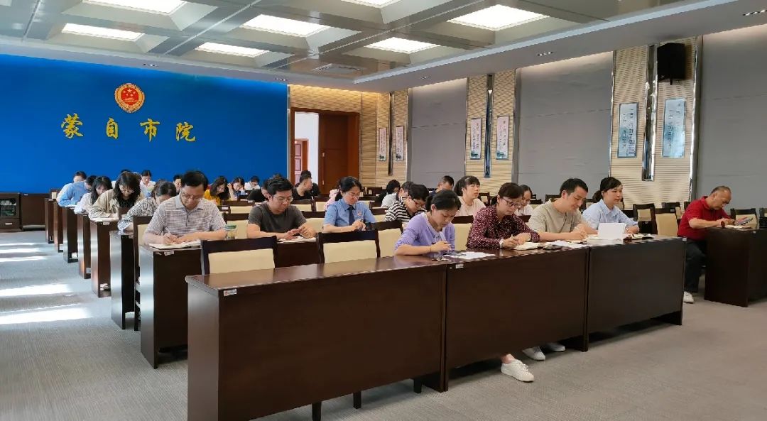 5月7日下午,蒙自市人民检察院集中学习《关于新形势下党内政治生活的若干准则》,院党组成员、政治部主任李周叁领学,党组班子成员及在家的干警参加学习。