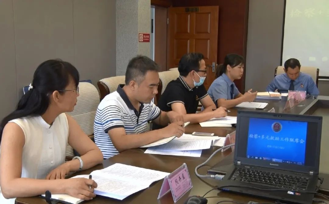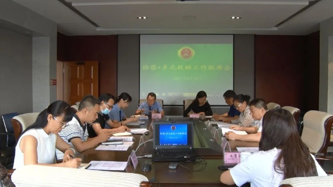 为进一步深化国家司法救助工作,切实加强国家司法救助与社会化救助的紧密衔接,有效整合救助资源、拓宽救 助渠道,解决当事人实际困难,以司法救助助力巩固拓展脱贫攻坚成果助推乡村振兴大局,2021年5月12日,蒙自市检察院组织召开”检察+多元救助“工作联席会,会议由蒙自市人民检察院党组成员、副检察长黄敏主持,市司法局、市民政局、市残联、市扶贫办等九个部门分管领导参加会议。