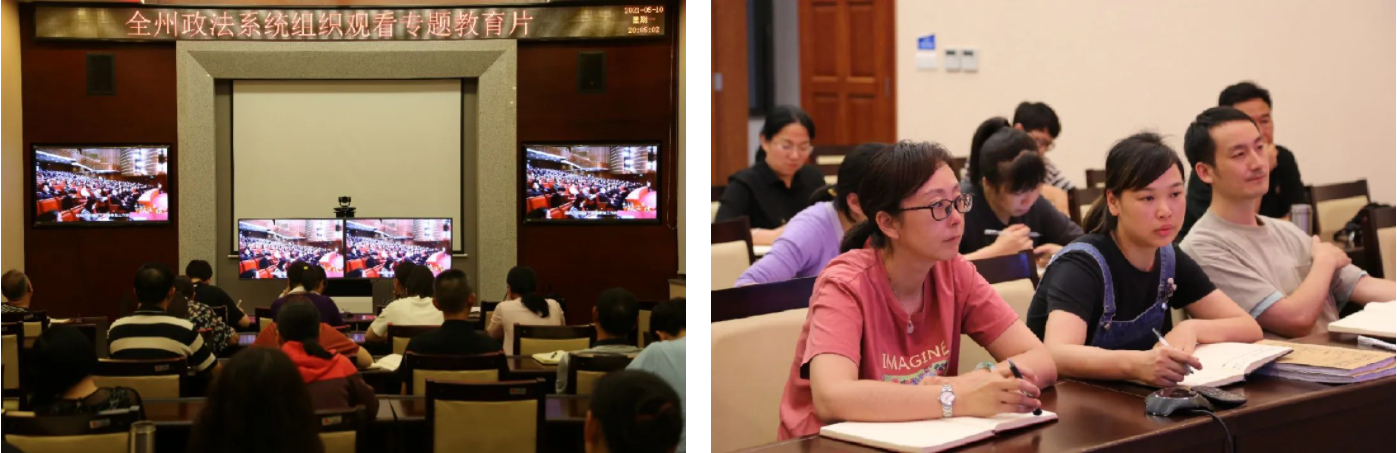 通过观看政法队伍英模先进事迹报告会,讲述了胡国运、李延军、张保国、陈昕茹、王勇5位同志的先进事迹,诠释了政法干警坚守法律信仰、维护公平正义的优秀品质。事迹报告生动感人、振奋人心,全院干警接受精神洗礼,引起强烈共鸣。