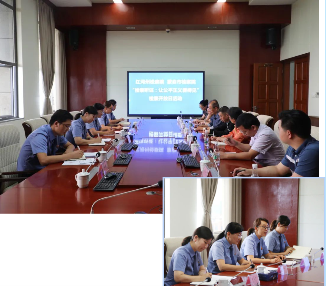 活动中,受邀人员一同参观了蒙自市检察院12309检察服务大厅、案件管理办公室、未检办案区、党建活动阵地等场所。