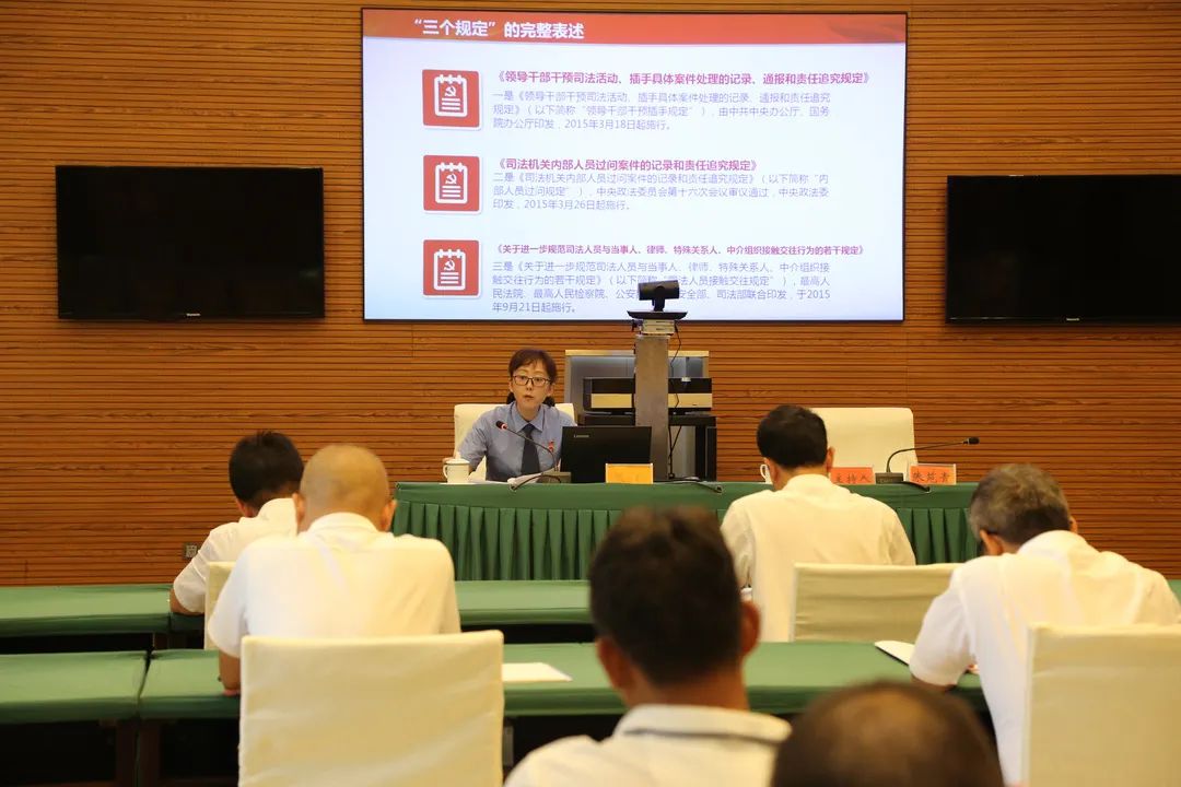 为进一步营造践行“三个规定”的浓厚氛围,大力提升非政法系统党政领导干部对“三个规定”的知晓率和支持度,6月15日,蒙自市召开“三个规定”大宣讲暨党政领导干部公开承诺行动大会,蒙自市人民检察院党组副书记、副检察长张玲作专题宣讲,市人大、市政协、市检察院等部门科级领导干部共计30余人聆听宣讲。