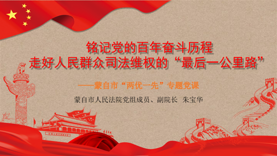 动员会结束后,受邀市人民法院党组成员、副院长朱宝华同志为蒙自市人民检察院全体干警作“铭记党的百年奋斗历程,走好人民群众司法维权的最后一公里”蒙自市“两优一先”专题党课辅导。