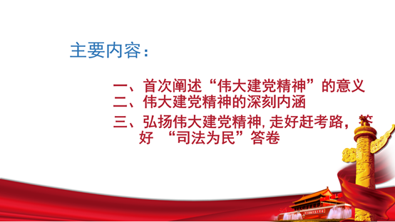 ?院党组副书记、副检察长张玲结合“两优一先”进机关讲党课活动,以《弘扬伟大建党精神,答好赶考路上“司法为民”新考卷》为题讲党课。围绕伟大建党精神的意义,伟大建党精神的深刻内涵、弘扬伟大建党精神,走好赶考路,答好“司法为民”答卷,为全院干警进行了深刻阐述。