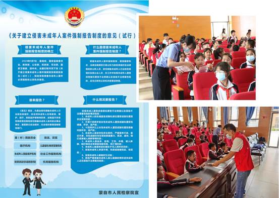 下一步活动中,蒙自市人民检察院还将以“防范校园欺凌”、“禁毒”、“未成年人保护法解读”等主题,在全市多个中小学开展以法治教育为主题的“开学第一课”;组织学校教职工对“强制报告”的学习,明晰学校及教职员工对未成年人的保护职责,协助学校加强师德师风建设;通过线上的方式与学生家长进行亲职教育,明确未成年人家长(监护人)对未成年人的保护职责,提高保护能力,营造好法治教育的良好氛围,共同守护未成年人健康成长。