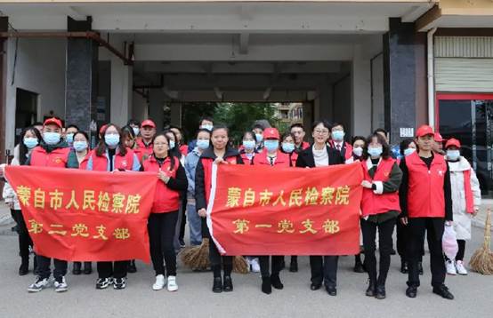近日,蒙自市人民检察院与社区 结对共建开展“学史力行践初心 我为群众办实事”主题党日活动。第一党支部、第二党支部全体党员同志参加,到包保小区开展卫生整治活动。