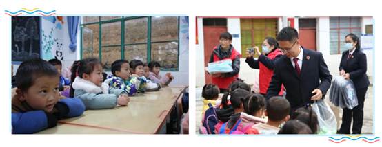 李周叁一行询问了菲土小学的基本状况及学生学习生活情况。在活动现场,检察院干警与留守儿童学生进行了“击鼓传花”、“萝卜蹲”等游戏,孩子们兴致高涨,气氛十分活跃。游戏后,检察院干警给孩子们赠送了书包、彩笔等学习用品,给幼儿班的小朋友发放了玩偶等小礼物。