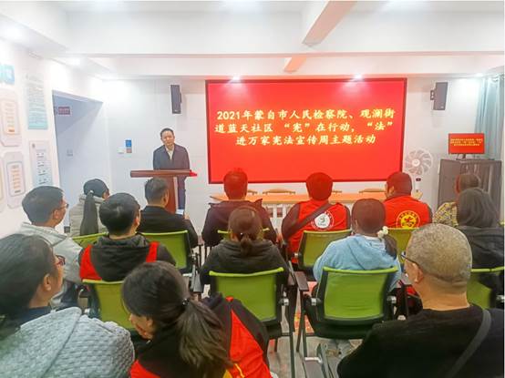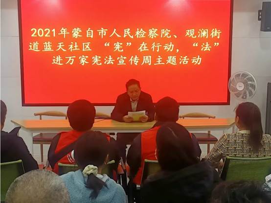 为使“习近平新时代中国特色社会主义思想”深入人心、直达基层、走近群众,近日,蒙自市人民检察院党组书记、代理检察长毛雪峰到观澜街道蓝天社区开展实地宣讲活动。