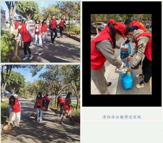 志愿者们“兵分三路”,对办公楼周边区域、小区内部以及周边道路环境卫生进行大扫除。他们身穿“红马甲”,头戴“小红帽”,手拿扫把、火钳等工具到责任区域内对落叶、果皮、纸屑、白色垃圾等杂物进行逐一清扫,清理墙壁上的非法小广告。