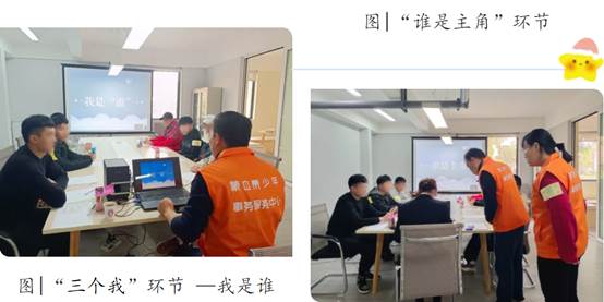 活动伊始,黄敏副检察长到场向大家介绍了帮教小组活动的相关规则,告诫他们要遵守法律规定,规范自己的行为,促使他们提高法律意识,并对小组成员发展良好的社会行为寄予厚望。“向阳”小组的7名附条件不起诉未成年人在服务中心倪老师的带领下,开展了“认识自我”的团体心理辅导活动,包括“谁来夸夸我”“谁是主角”“三个我”三个环节。通过案件重演引导组员们思考在其中每个角色的法律关系以及被害人的切身感受,加深小组成员们对自己违法犯罪行为的反思。成员们在自己的九宫格里面写下了“以前的我”“现在的我”“未来的我”,梳理出简单的人生轨迹,体验到自身的变化以及对自我的期望,成员们表示这种感知过程是他们以前不了解的,带给了他们不一样的感受。