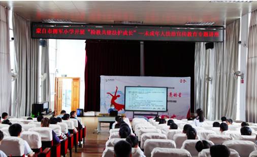 为加强未成年人思想道德建设,进一步提升未成年学生法治意识,树立法治观念。近日,“七彩未检”“梯田春苗”——蒙自市人民检察院未检干警以“争做守法少年,远离不法侵害”的主题,给蒙自市拥军小学的师生上了一堂生动有趣的法治课。