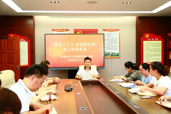 9月21日下午,蒙自市人民检察院党组成员、政治部主任李周叁以“喜迎二十大 奋进新征程”为主题,结合新时代检察院工作要求和自身体会,为蒙自市人民检察院第一党支部全体党员讲授专题党课。