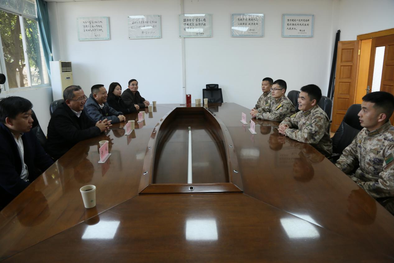 在部队驻地,一行领导与官兵们亲切交谈,详细询问部队官兵们的工作生活和部队建设等情况,感谢部队积极参与蒙自经济社会建设和疫情防控工作,为提高蒙自人民的幸福感、安全感做出了重大贡献。