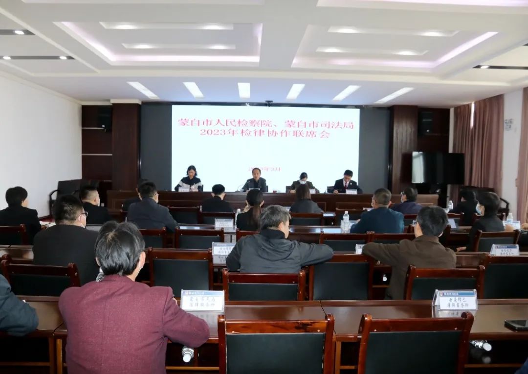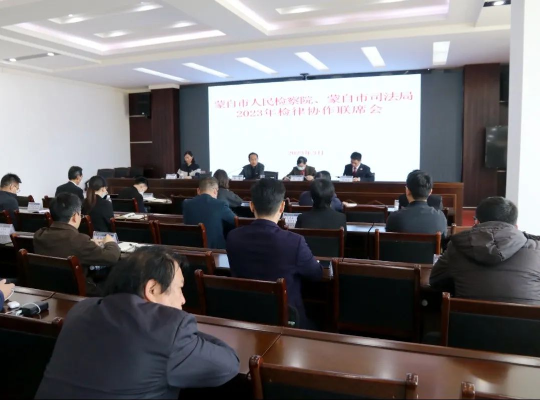 为深入贯彻落实习近平法治思想,加强检律协作,依法保障律师执业权利,3月17日,蒙自市人民检察院联合市司法局召开2023年度第一次检律协作联席会议。市司法局党组成员、副局长杨勇、市检察院党组成员、副检察长黄敏、相关部门负责人及辖区内律师事务所主任和党支部书记参加了会议。