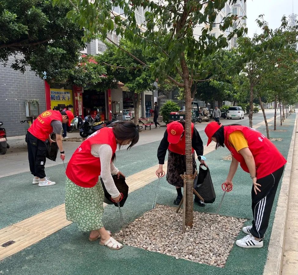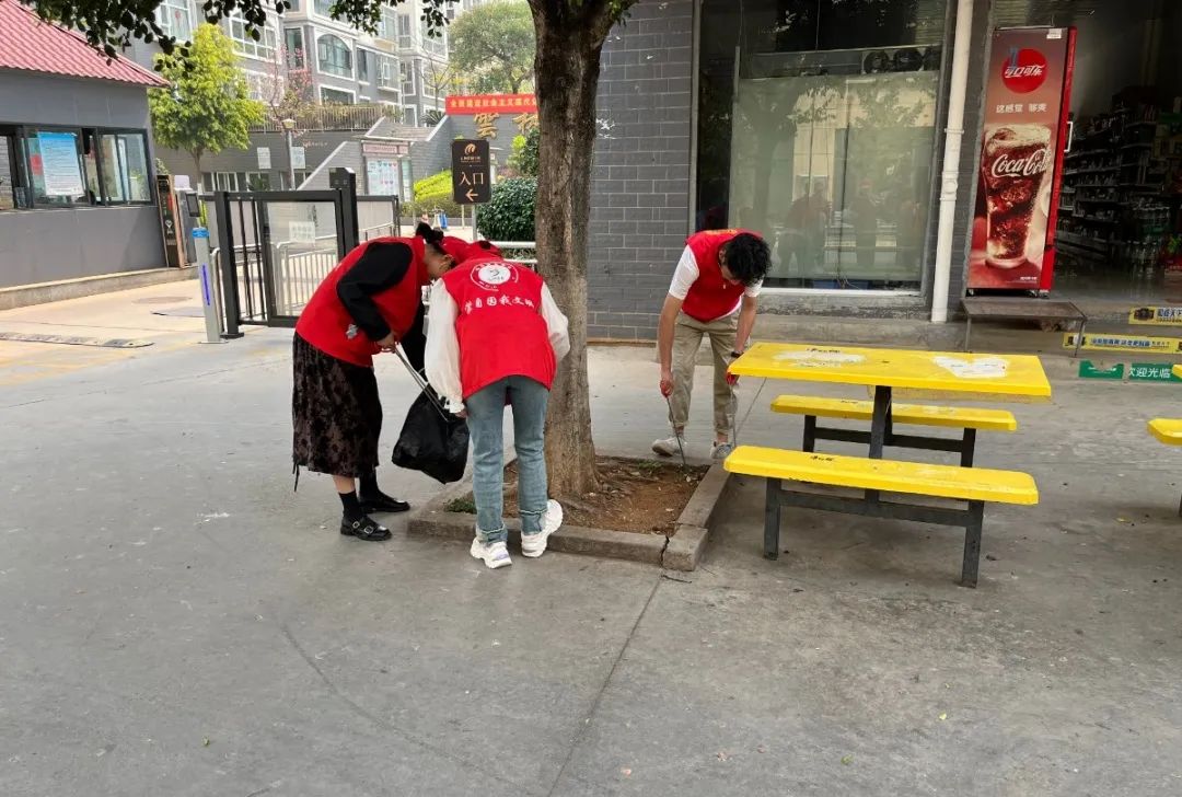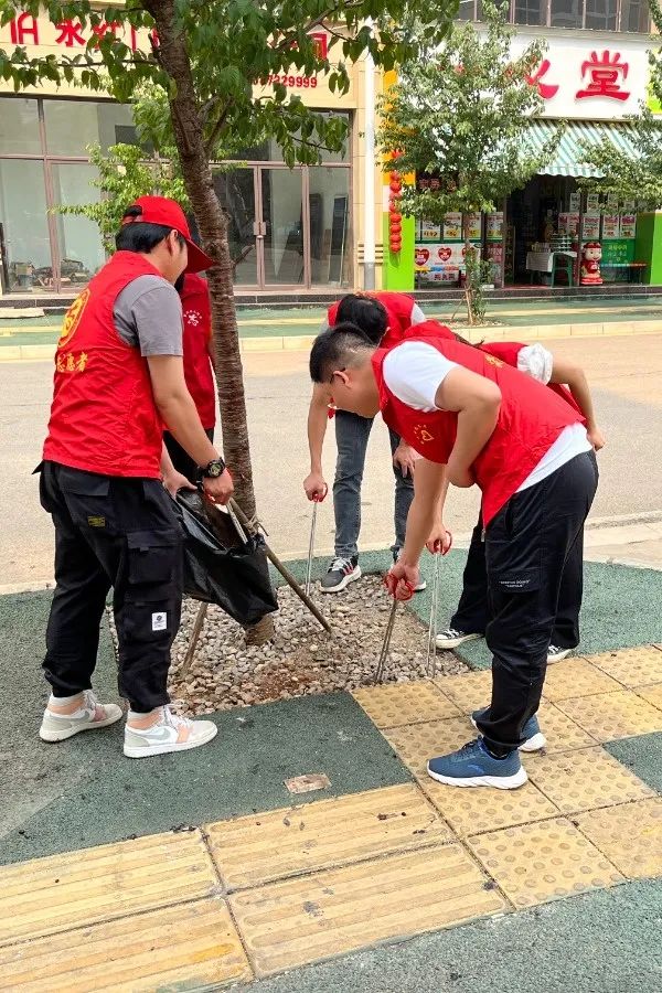 活动中检察干警身穿红马甲,自带清扫工具,对包保小区及周边道路整洁度、绿化带环境、垃圾分类桶、墙上小广告等方面进行整治。