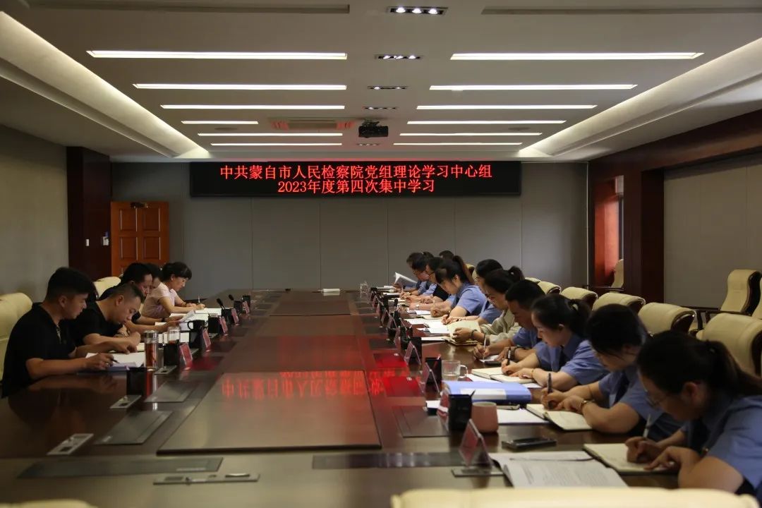 6月29日蒙自市人民检察院党组理论学习中心组举行2023年第四次集中学习。市检察院班子成员、检委会专职委员、部门负责人、员额检察官参加学习。市检察院党组书记、检察长毛雪峰主持会议。