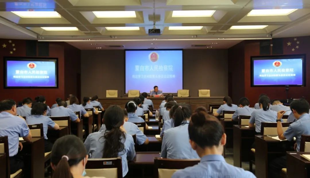 8月10日,蒙自市人民检察院召开全院干警大会,传达学习全州检察长座谈会精神,并对2023年下半年检察工作进行安排部署。院党组班子成员、全体干警参会。