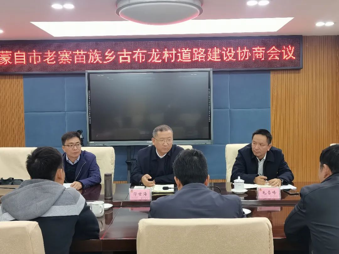 2024年1月4日,蒙自市政协召开专题协商会,围绕蒙自市老寨苗族乡古布龙村道路建设进行协商。协商会由市政协主席符世海主持,市政府副市长王炳林、市检察院检察长毛雪峰、市政协委员、市财政局、市交通局、市乡村振兴局、老寨苗族乡政府相关负责同志和村民代表参加。