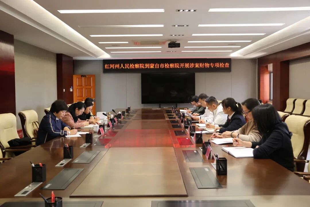 为强化司法办案内部监督,进一步加强和规范涉案财物管理,3月22日,红河州人民检察院检务督察部主任张玲一行到蒙自市人民检察院开展涉案财物专项检查。