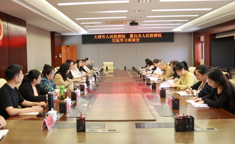 为学习借鉴先进经验,创新工作思路,助力检察工作提质增效,10月22日,大理市检察院党组成员、副检察长马仲双率队到蒙自市检察院参观交流学习。党组成员、副检察长杨垚,副检察长郭祥龙,第一、第二检察部干警参加座谈会。