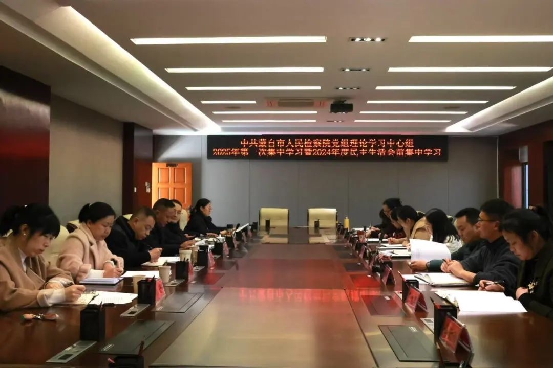 1月24日,蒙自市人民检察院党组理论学习中心组举行2025年第一次集中学习暨2024年度民主生活会前集中学习。市检察院班子成员、检委会专职委员、部门负责人、员额检察官参加学习。党组书记、检察长毛雪峰主持会议。