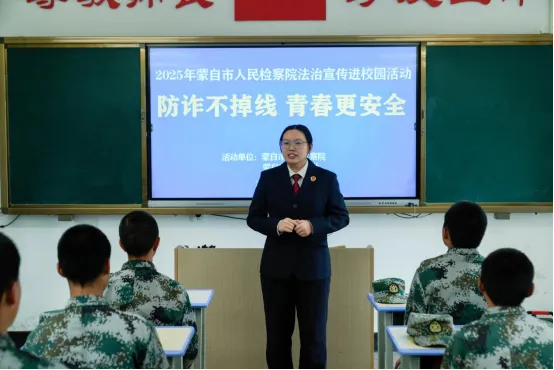 为提高同学们的防范意识,近日,蒙自市人民检察院联合蒙自市关心下一代工作委员会深入蒙自市第六中学开展“开学季法治进校园活动”,进行反电诈普法宣传,提醒大家警惕骗局,远离诈骗陷阱。