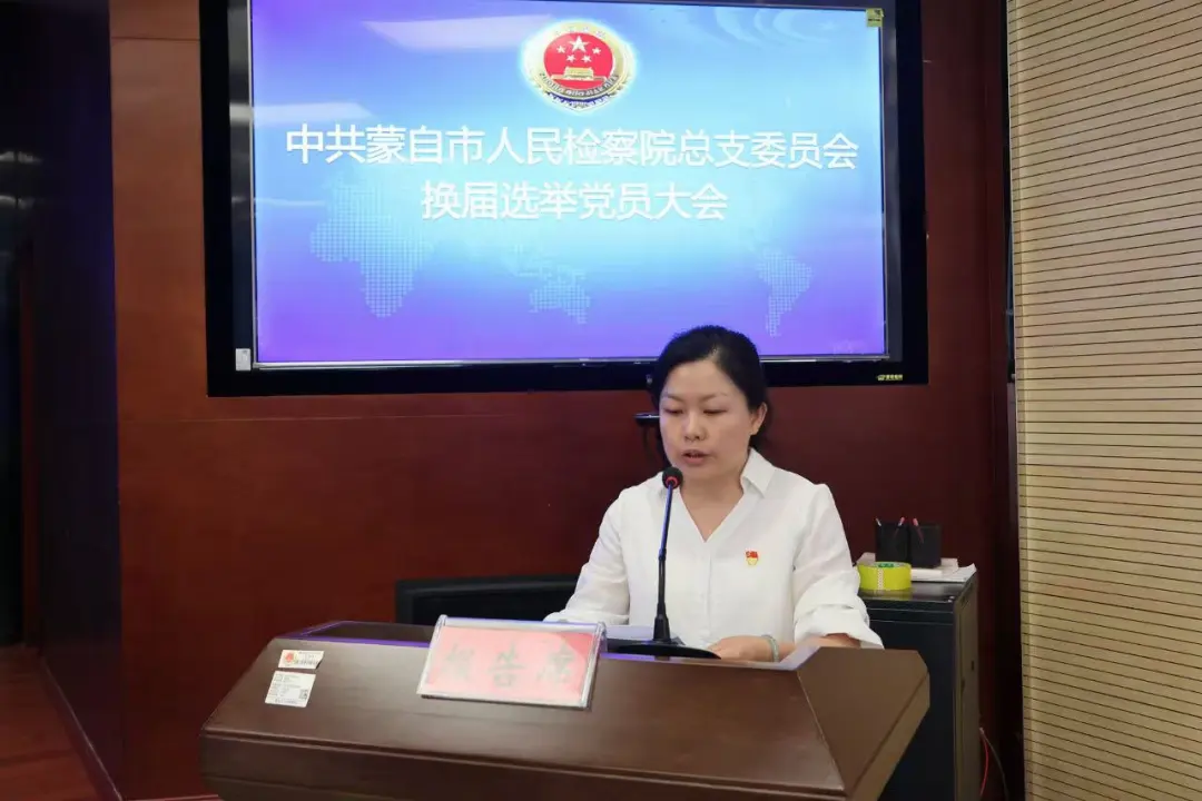 为进一步加强基层党组织建设,提升党组织的凝聚力和战斗力,4月25日,蒙自市人民检察院召开党员大会,选举新一届党总支委员会委员。会议由党组成员、党总支书记、政治部主任莫庆芳同志主持。