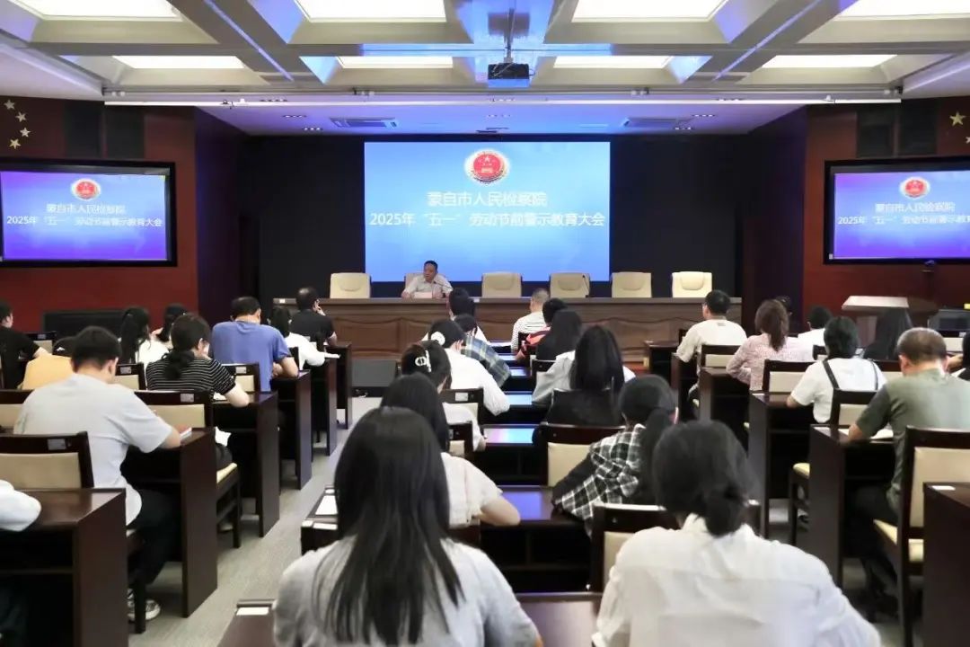 为引导全体检察人员筑牢思想防线、严守纪律底线,确保过一个廉洁、安全、祥和的节日,4月30日,蒙自市人民检察院召开“五一”劳动节节前警示教育大会。全院干警参加会议。
