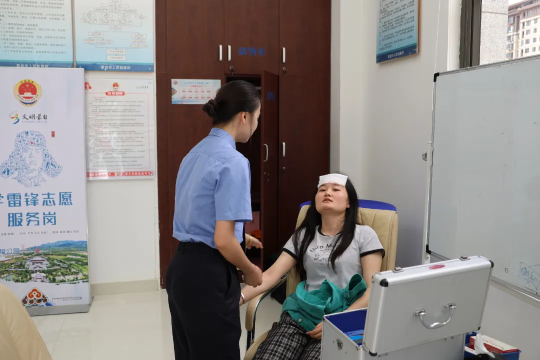 一名女性“信访人”来访时因中暑身体不适,坐在12309检察服务中心大厅内无法行动……