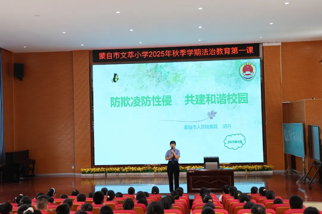 为进一步加强校园法治教育,提升学生的法律意识和自我保护能力,近日,红河州检察机关联合教育体育部门连续开展第七届“校园法治文化月”活动。蒙自市人民检察院积极响应活动部署,针对当前青少年成长过程中面临的热点问题,组织未检干警先后走进蒙自一小、文萃小学、崇德学校,围绕不同主题开展法治宣讲,为近千名师生带来了生动且实用的法治“必修课”。