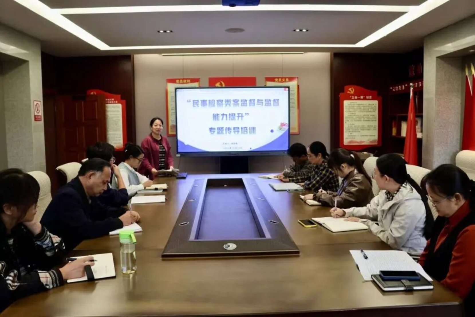 张亚旭同志聚焦民事检察业务核心,分享了“民事检察类案监督与监督能力提升”的学习成果,她详细分析了当前民事检察监督实践中面临的难点与对策,通过引入案例,为第四检察部干警如何提升案件线索敏感性、增强法律适用统一性、提高监督意见说服力提供了新的思路与方法,有力促进了民事检察监督能力的整体跃升。