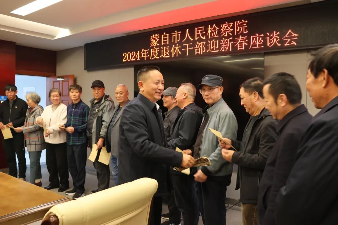 2024年,蒙自市人民检察院将继续发扬尊重老同志、关怀老同志的优良传统,增强服务意识,用心用情为退休干部办实事、解难事、做好事,不断增强退休干部的荣誉感、获得感、幸福感!