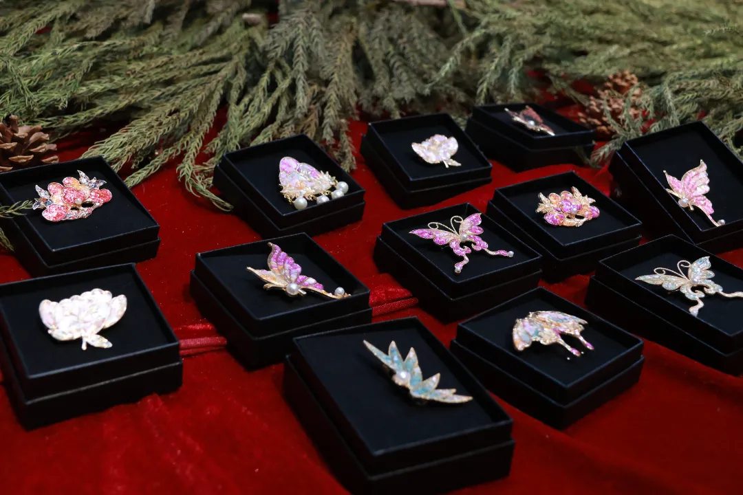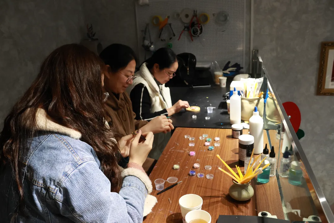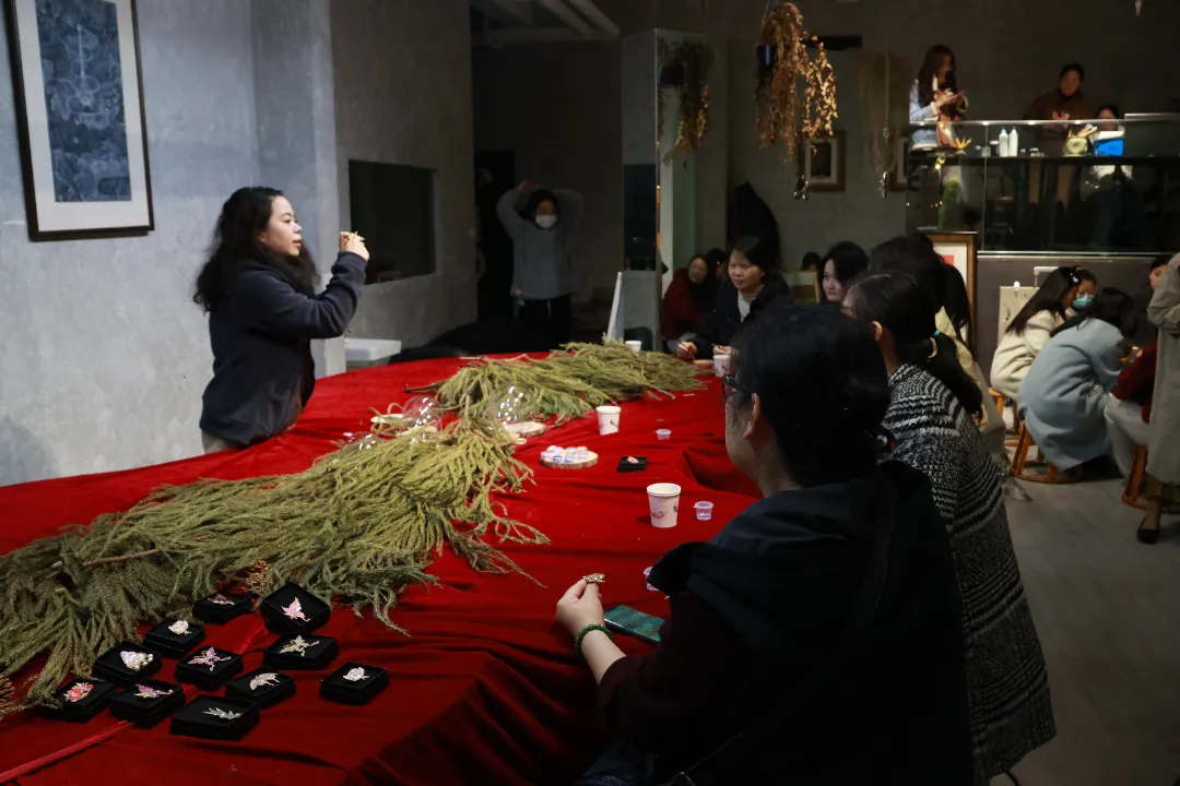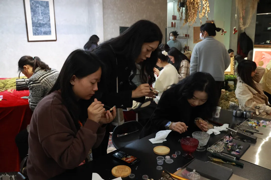 在工作人员的指导下,女干警们亲手将一片片色彩斑斓的螺片镶嵌在精美的饰品上,将贝壳的天然光泽与创意设计结合,制作出独一无二的螺钿胸针。大家沉浸在这场体验传统非遗文化美的盛宴中,这也是一次与中国传统文化、先辈智慧结晶的古今思想碰撞。