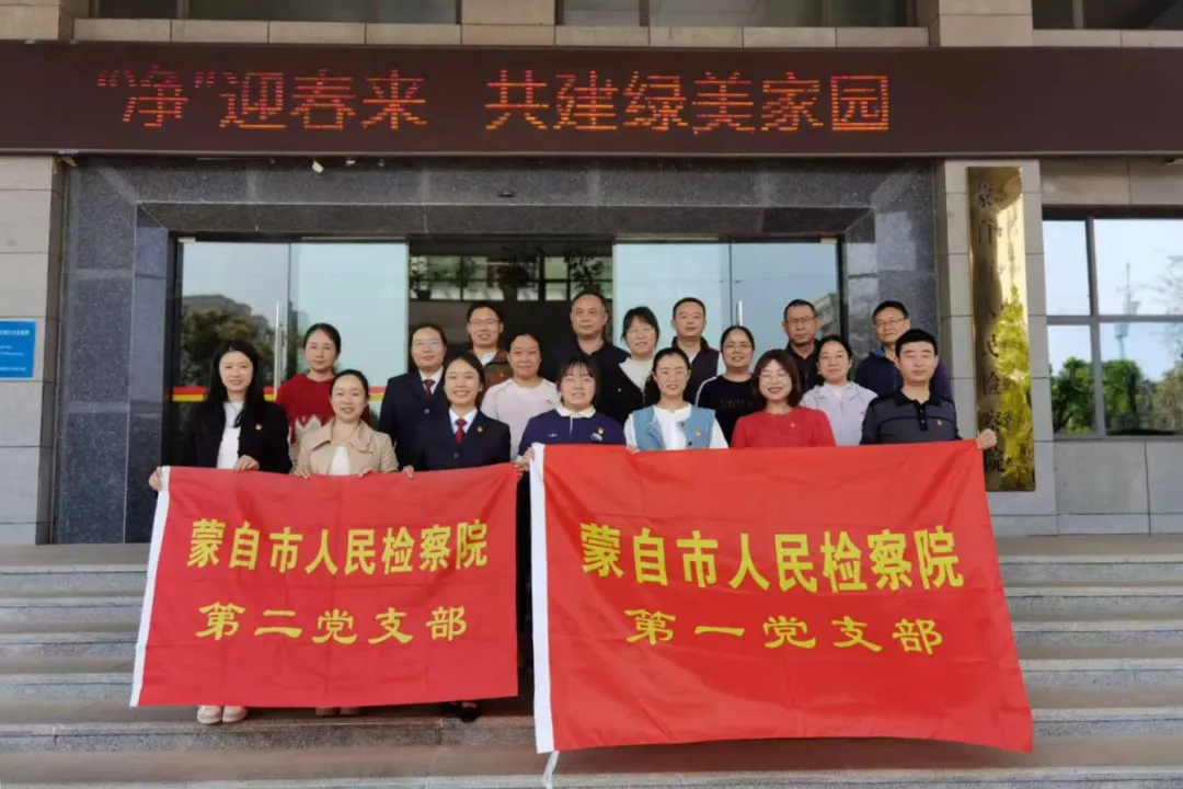 为进一步发挥党员先锋模范作用,营造整洁、舒适的办公环境,3月14日,蒙自市人民检察院党支部开展“'净'迎春来 共建绿美家园”主题党日活动。