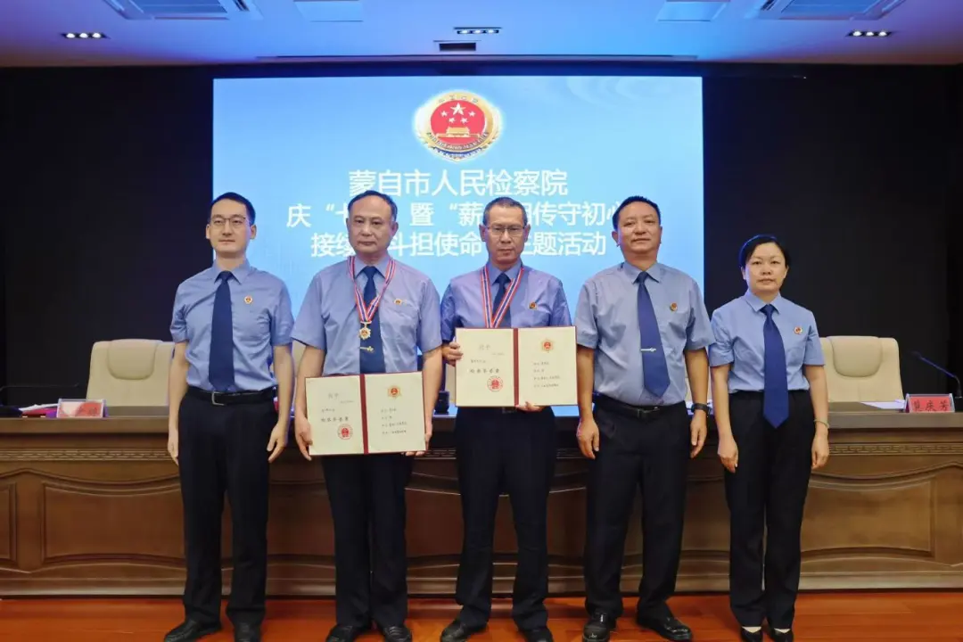 为庆祝中国共产党成立104周年,激励全体检察干警传承红色基因、赓续奋斗精神,7月1日,蒙自市人民检察院举行庆“七一”暨“薪火相传守初心,接续奋斗担使命”主题活动。活动通过颁发检察荣誉章、讲授专题党课等形式,弘扬榜样力量,凝聚奋进动能。