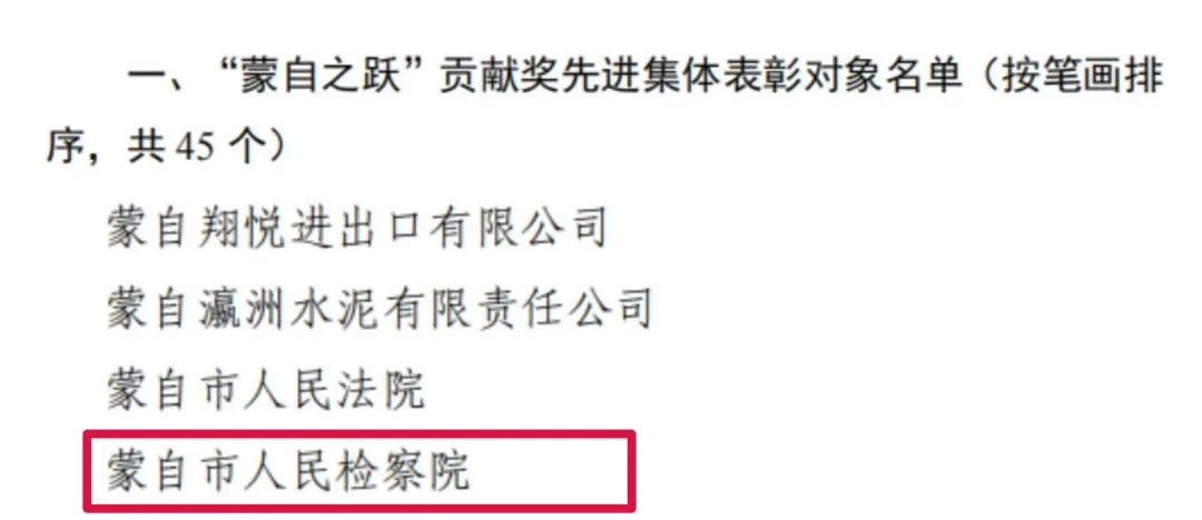 蒙自市人民检察院荣获“蒙自之跃”贡献奖先进集体称号;