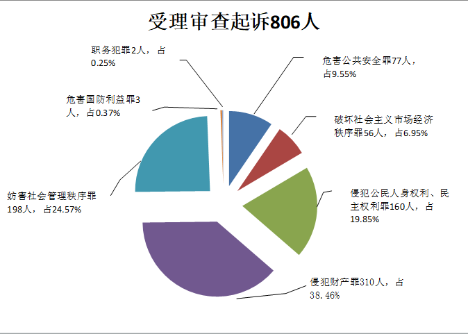 (一)坚持以稳定为核心,推进平安蒙自建设。办理审查逮捕案件422件702人,同比件数上升7.65%,人数上升11.43%。办理审查起诉案件520件806人,同比件数上升26.52%,人数上升22.30%。严惩社会影响恶劣、严重危害社会秩序、严重影响人民群众安全感的故意杀人、故意伤害、制毒贩毒、“两抢一盗”等犯罪,批准逮捕246件364人,提起公诉259件404人。依法适用宽严相济刑事司法政策,减少社会对抗,对符合法定条件的轻微刑事案件,依法不批准逮捕80人,不起诉51人。切实担负起扫黑除恶专项斗争的政治责任和法律责任,指派副检察长、专职检察委员会委员和业务部门负责人提前介入引导侦查、从严把握事实证据标准,顺利完成4件22人涉恶案件的审查逮捕和审查起诉工作,形成打击黑恶势力犯罪的高压态势。