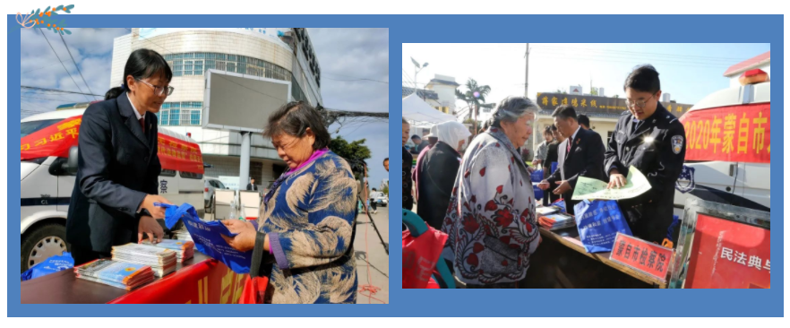在宣传活动现场,蒙自市人民检察院通过设立咨询台、悬挂条幅标语、摆放普法展板、发放法治宣传资料等方式,重点宣传了民法典、扫黑除恶专项斗争、民事行政、控告、申诉、举报等相关内容,当天共发放宣传资料2000余份,用形式多样的方式普及宪法知识、弘扬宪法精神。
